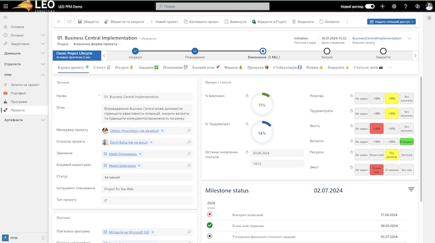 -управління життєвим циклом різних типів проектів. Саме тому ми впровадили рішення від LEO Consulting